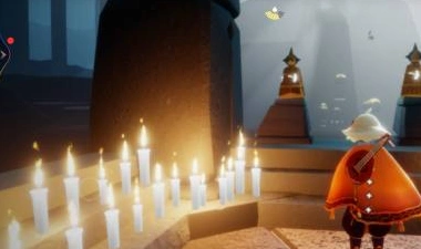 2.来到这里,然后从这里飞上去,进入神庙,打开神庙的大门进去。