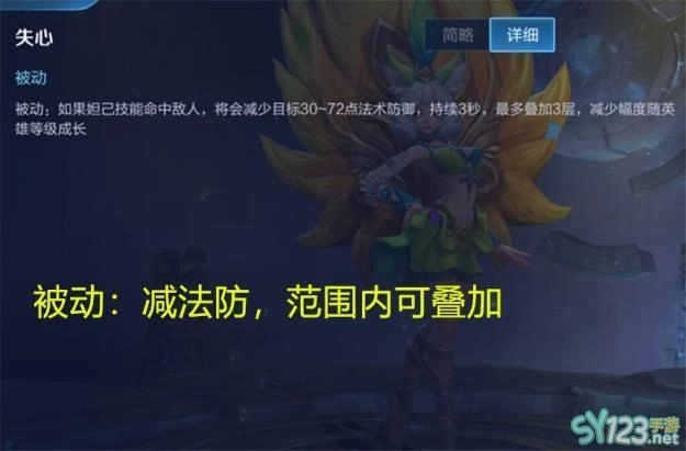 1、妲己的被动是只要技能可以命中敌方,就会使敌方减少法术防御,最多可以叠加三层,但是只持续3秒钟。但其实妲己打一套技能并不需要3s钟就可以将敌人置之死地。
