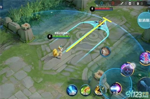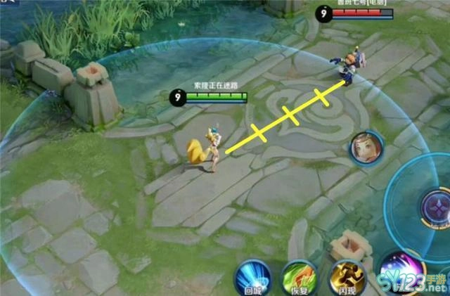 5、二技能的前摇和较小的施法范围,让妲己有一点点危险。最远端和妲己只差了四个身位,假如敌方有净化,一个位移可以瞬移两个身位,加上妲己二技能的前摇,几乎是分分钟贴脸。