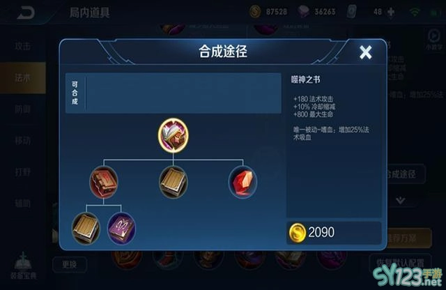3、噬神之书:这是以续航为主,除吸血外还有增加法术攻击、减CD、增长血条的作用。有了血量续航之后,法师往往会发现,自己的蓝用着用着就不够了。出血书不代表不需要回城了,当自己的蓝量到了警戒线,又拿不到蓝buff,还是有必要回家看看的。