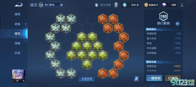 这套铭文可以提供712的生命值和10%的移速,铠没有位移,高移速可以方便铠追到敌人进行输出。