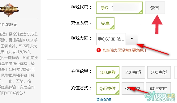 王者荣耀用q币给别人充点券,分为两种情况:微信区服和QQ区服
