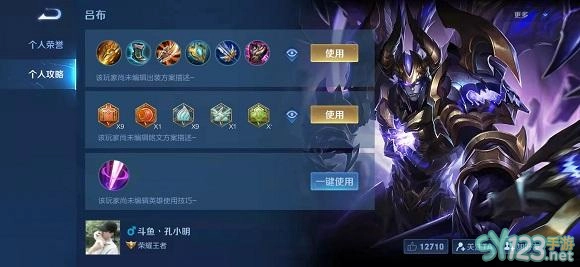 王者荣耀2021微信区国服第一吕布斗鱼、孔小明出装推荐如下: