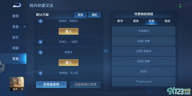 4. 填入完成后,点击上面的确定。这样就可以在对局中使用该消息了。