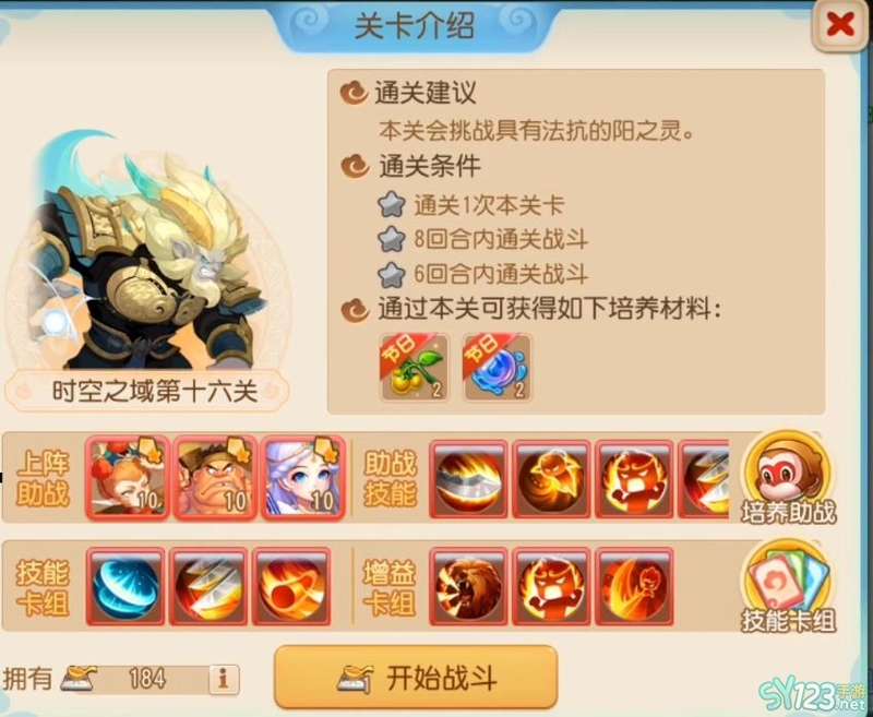 1)助战:助战选择孙悟空、大当家、挽歌公主