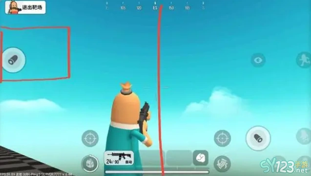 首先要知道三指操作,大家都不陌生,中央红线的左边是移动和开火 右边是瞄准 但是在这里再提醒一下 香肠岛的左侧开火按键是比较特殊的 虽然左侧开火键看起来很小 但是红框标出的区域内点到都是可以触发开火的。