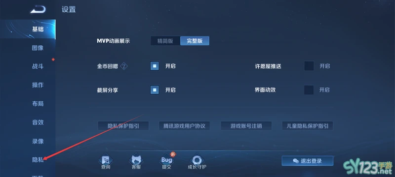 3.打开“隐私”看到右侧“战绩显示”单击取消勾选即可隐藏战绩