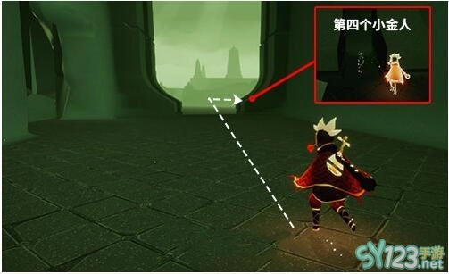7、 随后在四龙图往最后一个地图走的大门这里,萦绕很多光点,然后在中间有个小金人,如图。