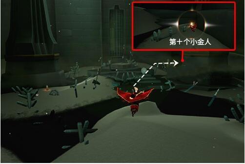 12、飞向沉船,在沉船的右下边缺口里有一个小金人,如图。