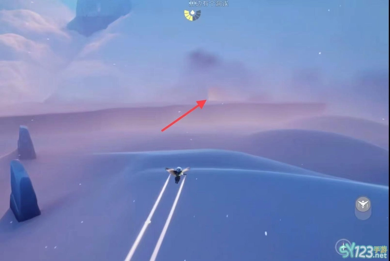 2.往前飞,前方有一个云洞。