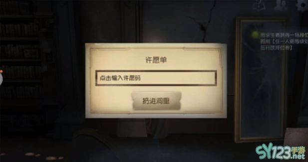 3、在交互之后出现许愿单页面,许愿单也就是礼包兑换码,在此处输入所获的兑换码然后点击扔进洞里即可获取兑换码中的奖励。