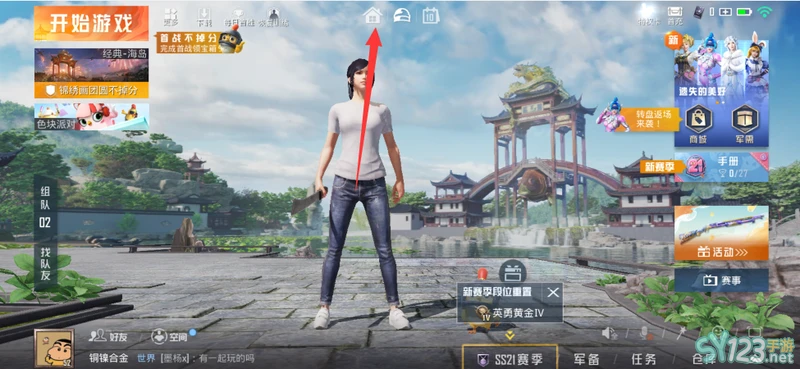 1、我们进入游戏主页,点击游戏人物上方的房子图标进入。