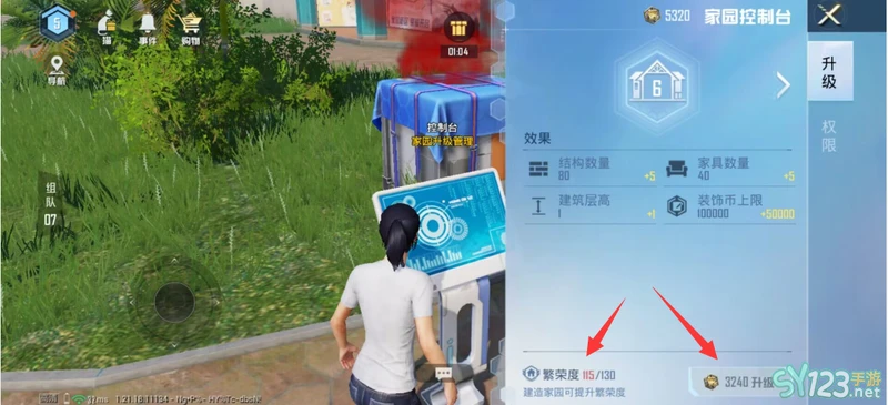3、等我们的家园繁荣度达到升级的要求,在房间外找到家园控制台,来升级家园等级,随着家园等级的提升不同的玩法也会解锁。