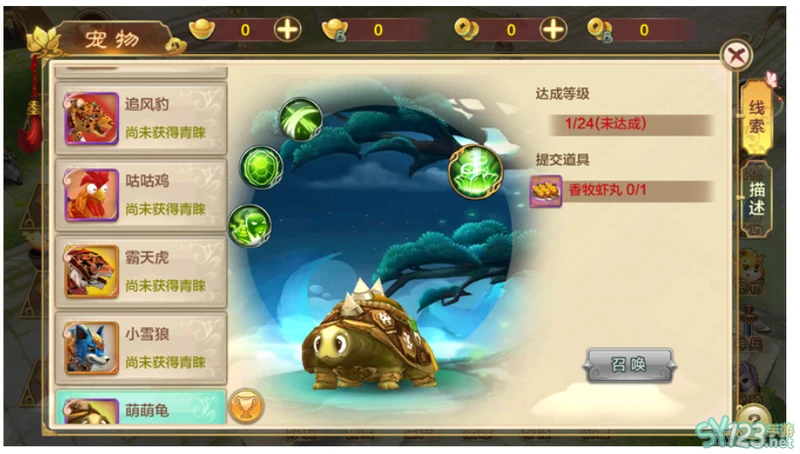 2、萌萌龟:支线任务获得:玩家24级是可领取萌萌龟的支线任务,到三邪圣地找到戚小山完成任务即可获得宠物萌萌龟啦!作为一个肉盾型的宠物,萌萌龟的技能以嘲讽对手、提升自身闪避以及恢复生命值为主。是可以当作玩家的前期过度宠物使用的哦。