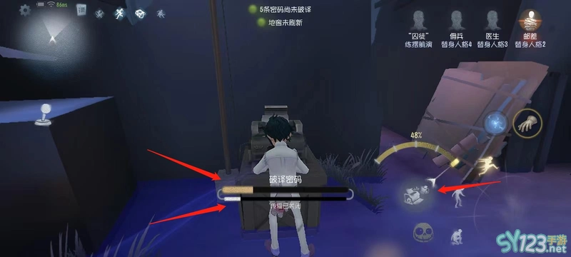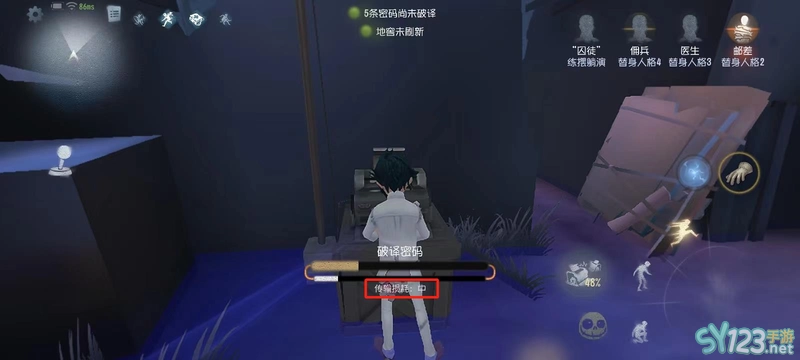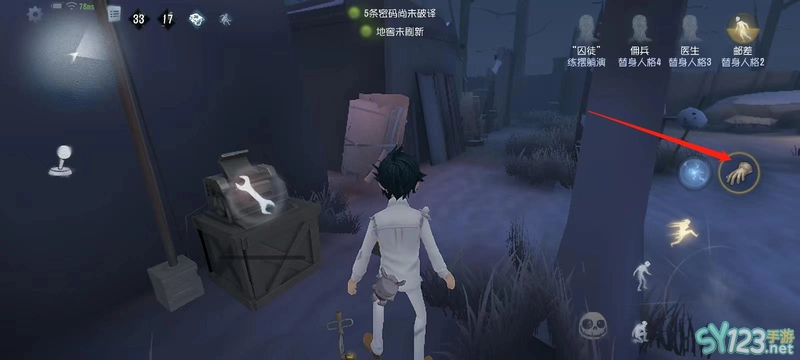 进入游戏后,控制囚徒来到密码机面前,点击右侧自己的技能图标。