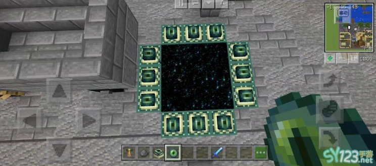 1、在游戏我的世界手机版中是有末地的,玩家想要去末地需要首先将摆放末地传送门,按照如图所示的位置进行摆放,然后在末地传送门上放末影之眼,可以看到末地传送门已经启动。