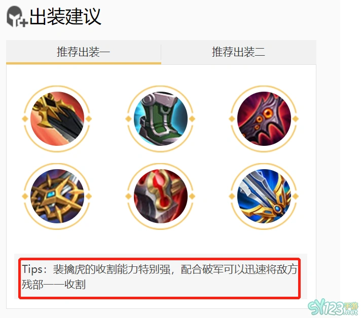 裴擒虎前期的技能伤害并不俗,所以不用立刻出二级打野刀,可以出完狩猎宽刃后出小布鞋,接着出红色打野刀