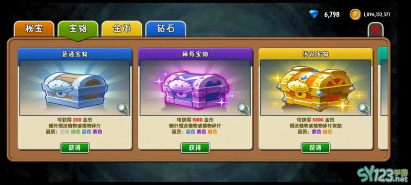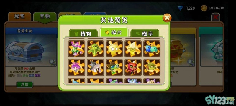 1、植物大战僵尸2瓷砖萝卜,可以在普通宝物,稀有宝物,传奇宝物用钻石抽取获得。