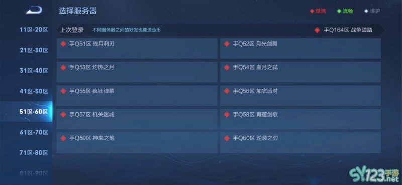 六、51-60区的名字分别为:残月利刃、月光剑舞、灼热之月、血月之弑、疯狂弹幕、加农派对、机关迷城、青莲剑歌、神来之笔、逆袭之刃。
