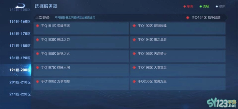 二十、191-200区的名字分别为:荣耀王者、哥特玫瑰、绯红之刃、鬼之武者、地狱之火、天启骑士、花好人间、大秦宣后、万事如意、龙腾万里。