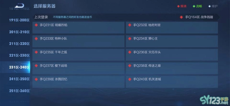 二十四、231-240区的名字分别为:明媚烈焰、地府判官、特种小队、狮心王、千年之狐、灾厄尽头、稷下战场、传送之扉、杀戮回忆、机关迷城。