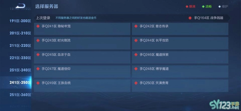 二十五、241-250区的名字分别为:隐秘牢笼、意志传承、时光倒流、长平攻防、血浓于血、魔道探索、魔道信仰、博学魔道、王族血统、天潢贵胄。