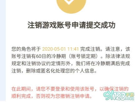 十、这时会提示注销申请已提交,会在一至两个月内完成注销,这段时间内不能够登陆入该区,否则视同撤消注销。