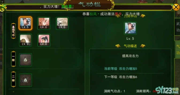 49-58级: 加满四两千金就好了,到了这个时候应该对江湖有所了解了,各种加点方式各有特长。华山,狂风,霸气,四两,真5按顺序加满。