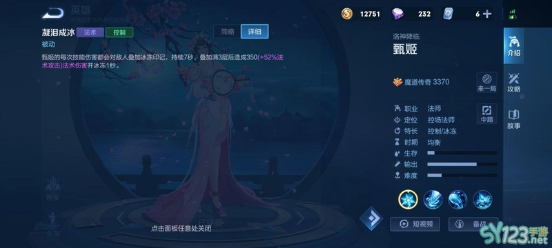 4、甄姬的被动可以冰冻敌人形成控制效果,在有两个敌方单位时可以起手一技能控制,再二技能弹射叠满印记造成伤害。