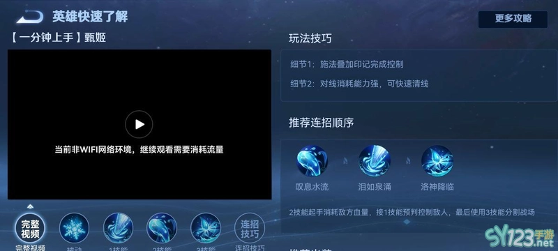 5、甄姬的连招建议是二技能起手消耗敌方血量,接一技能预判控制敌人,最后使用三技能分割战场,增加甄姬的存活率,甄姬的技能可以边走边放,适合拉扯对战。