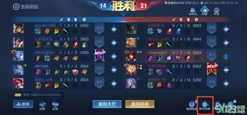 1.玩家在结束一场战斗后,点击右下角【保存回放】;
