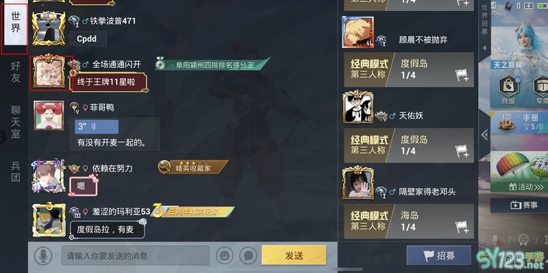 玩家进入游戏后,在游戏的主页面,最下面世界发言栏,点击进入。