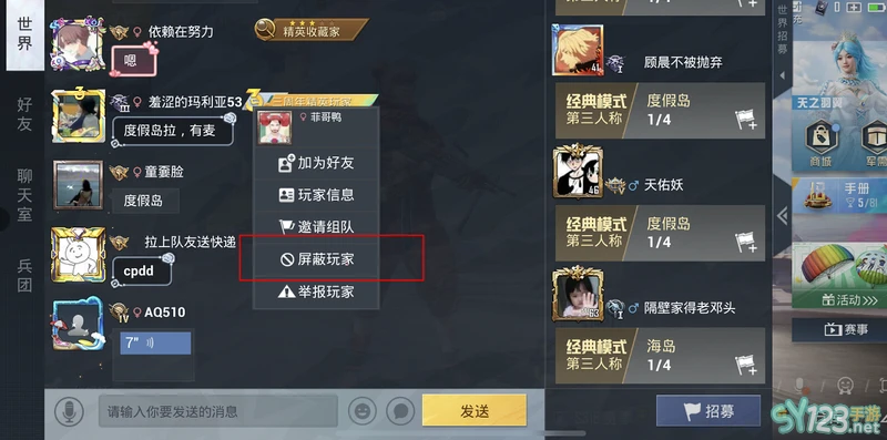 点开陌生人头像后,弹出的框选里面,选择屏蔽玩家,就能拉黑陌生人了。