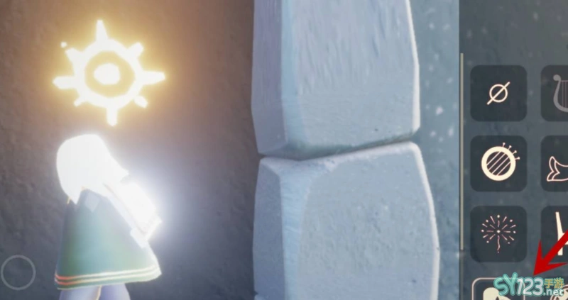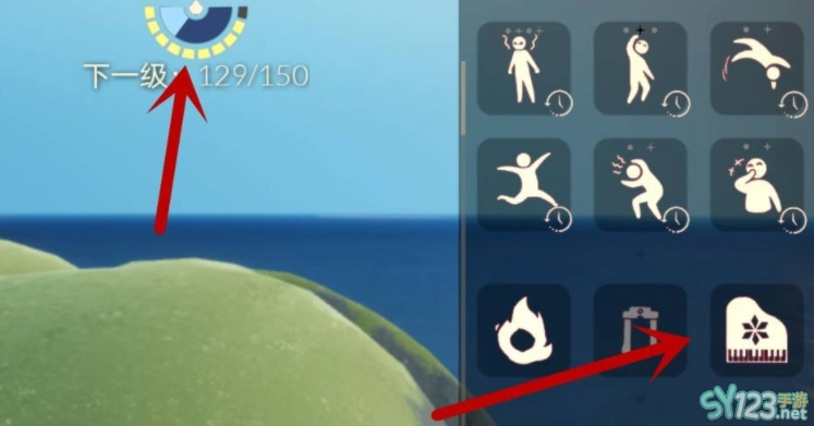 3、然后随便找个地方,点击头顶上的光之翼,再点击右侧的钢琴。