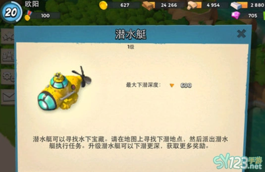 玩家可以用潜水艇下潜,不过前提是你得在地图上找到浮标,里面用金币下潜,奖励有矿石,钻石和随即物品,等级越高,下潜就更深。