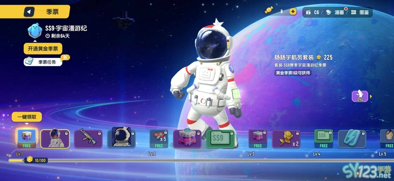 1、肠肠宇航员套装是ss9赛季手册一级即可拥有的套装奖励。