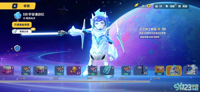 4、太空骑士套装是ss9赛季手册一百级即可拥有的套装奖励。