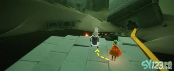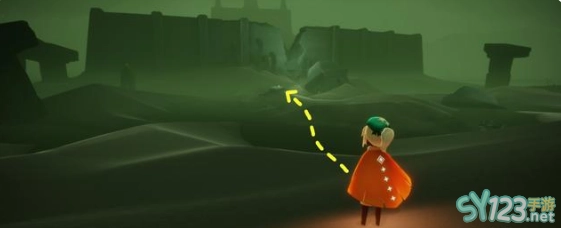 2、动画过后,一直往前走,可以看到建筑,这个先祖的位置非常好找,往正前方飞过去,在一个平台上就能找到先祖。