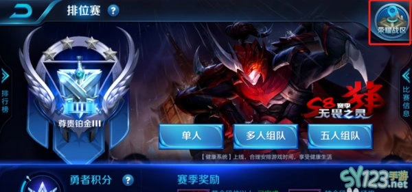 2、点击右上角写有“荣耀战区”的小圈圈后上面(最顶上,荣耀战区几个字后面,点击那个设置圈圈就可以了)。