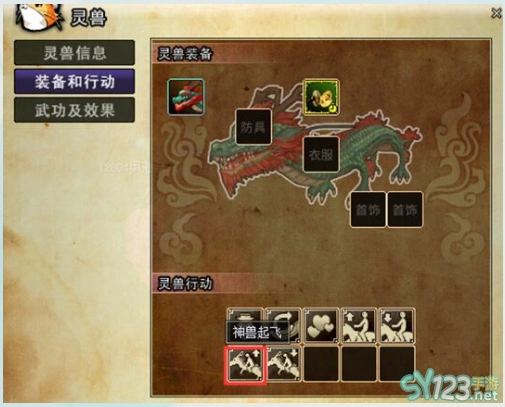 一、热血江湖红龙就是灵兽龙:骑乘龙移动的时候,默认是在地面移动,点击灵兽动作窗里的“灵兽起飞”按钮,可以飞到空中