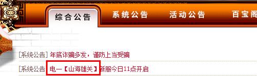 2、打开公告栏,我们就可以看到最新的区是2021年底开通的电一区山海雄关。