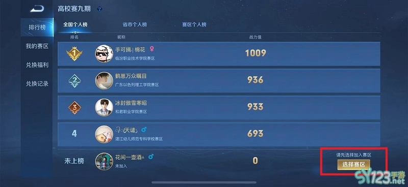 3.点击进入“选择赛区”。