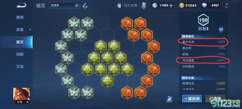 1,首先是26攻速的铭文,这套铭文虽然攻速快,但吕布不是主要靠普攻打输出的,所以意义不大,且这套铭文生命值只有不到四百点,太低了。