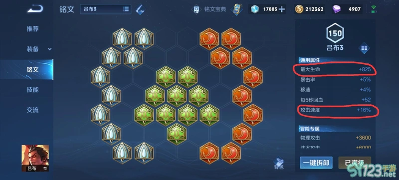 2,而反观16攻速的铭文,让吕布攻速不算低的情况下,还能提供825点生命值,让吕布前期更强,所以16攻速好。