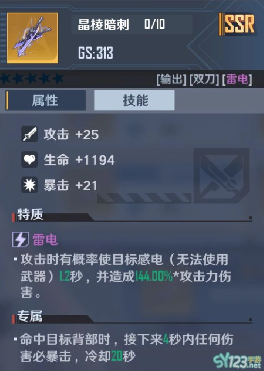 背刺必暴击,升星加爆伤,攻速快,连协技能打单打群都很给力,5秒后会有个爆发。
