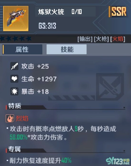 烈焰,攻击时有概率点燃敌人5秒,期间持续造成58%攻击力的伤害。内置小型原能反应炉以提供瞬时切割的强大动力,是不折不扣的大杀器。