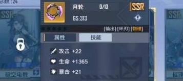 月轮是SSR的环刃武器,战斗中有空中攻击、散华、空旋等多种攻击形态,在攻击的时候有几率会使敌人陷入重伤。