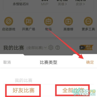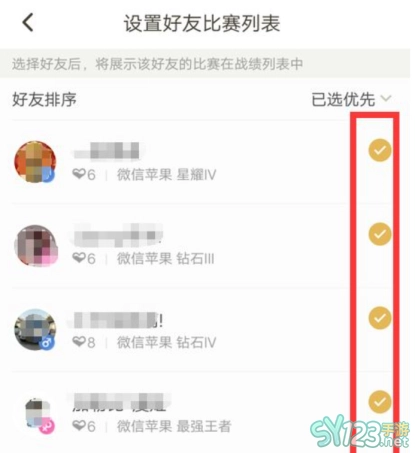 4、选择全部比赛后,勾选你要查询的好友。