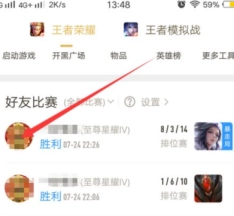 5、之后,在战绩显示页面里,点击好友的头像。