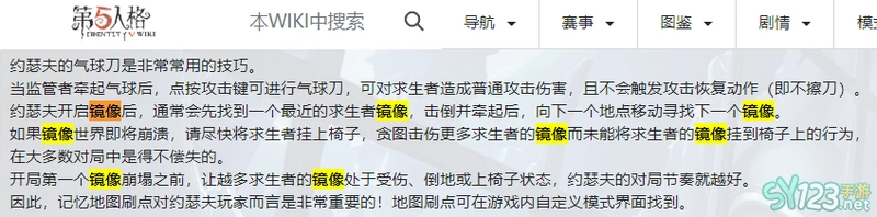 镜像是约瑟夫和红夫人的技能简称,其中约瑟夫的镜像技能具体描述:使用照相机拍摄某一时刻,复制此时刻的求生者与场景,创建一个静止的相中世界。约瑟夫可随时进入相中世界并找到相中人,将其放上狂欢之椅,求生者可通过照相机的残留影像进入相中世界。